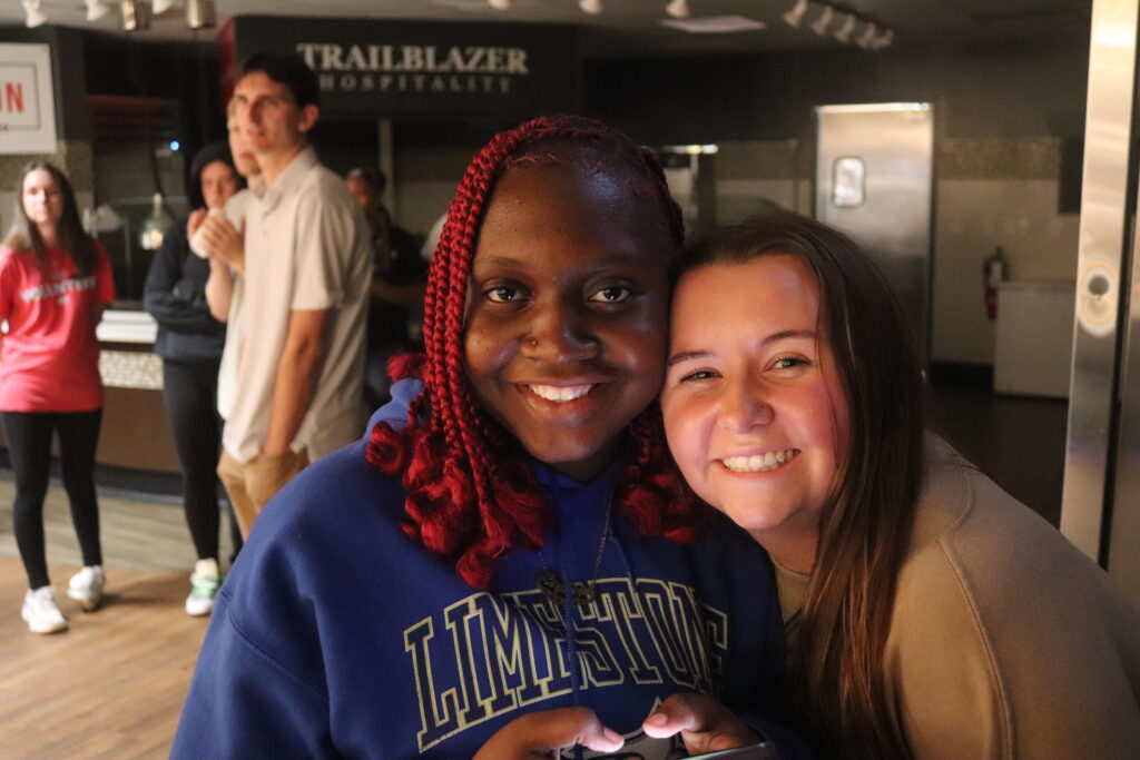 onderia Bailey, freshman, criminal justice major and Shelby Totherow, administration, with a Master of Business waiting in line to get their pizza.