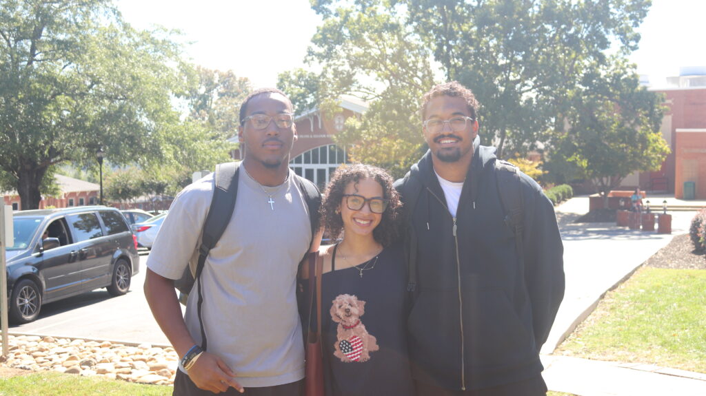 Khristian Means, junior business major and Paris Lenon, junior business management major, both played at the football game this fall break weekend, while Annie Rodriguez, junior marketing major worked over break.