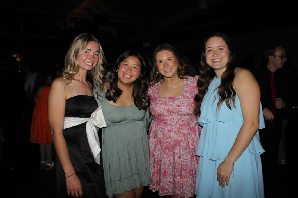 Kate Phillips, sophomore elementary education major, Caroline Bible, junior psychology major, Harley Chewning, sophomore elementary education major, and Cameron Woiczechowski, sophomore business management major show off their amazing homecoming dresses.
