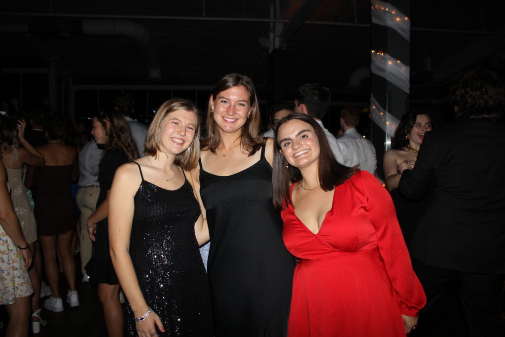 Mia Hefner, senior Christian studies major, Lindy Lamb, senior health science major and Emmie Porter, senior Spanish major pose for a picture at the homecoming dance.
